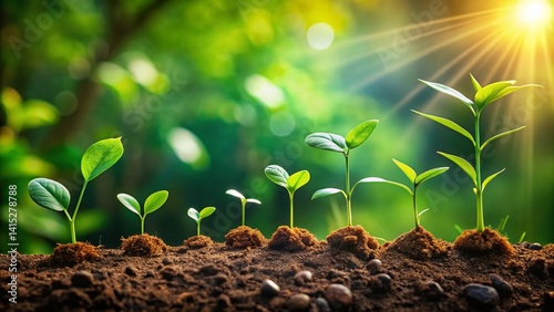 Plant Growth Stages: Detailed Seedling to Mature Plant Photography - High-Resolution Stock Image