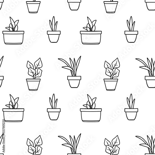 flowerpot, plant, doodle, drawing, hand-drawn, outline, vase, pot, shelf, cartoon, garden, greenery, seamless, pattern