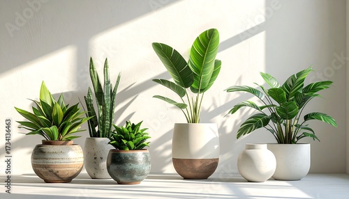 plant, pot, sun, light, green, nature, home, decor, white, interior, design, still life, pottery, texture, foliage, modern, minimalist, arrangement, beauty, calm