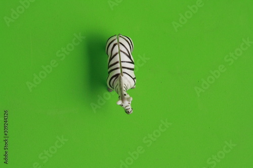 plastic toy with zebra shape in color background