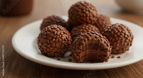 Plate with Brigadeiros, One with a Bite Taken, AI generated