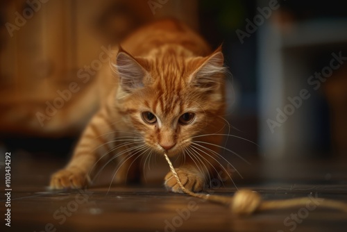 Playful Ginger Cat Engaged with String Toy