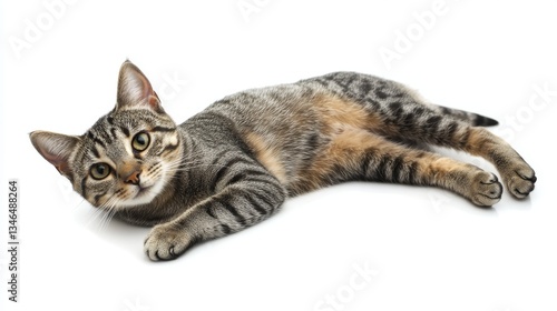 tabby, cat, relaxing, white, background, felino, playful, laying, stripes, whisker, paw, tail, ear, eye, fur, adorable, pet, domestic, cute, kitten, mammal, animal, resting, curious, gaze, pose, lounging, sleek, pattern, sofa, comfortable, friendly, attention, captivating, posture, calm, calmness, gentle, leisure, peaceful, charming, expressive, cosy, delightful