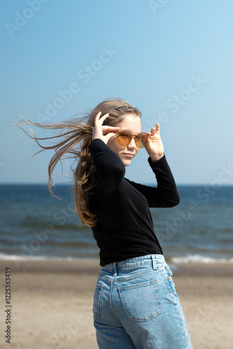 fun, girl, cinematography, playfulness, lifestyle, teenage girl, youth, sea, smile, positive, sunglasses, joyful, teenage, jean, active, happy, funny, joy, young, happiness, carefree, teenage, playful, beach, sky, person, sand, looking, hair, model, smiling