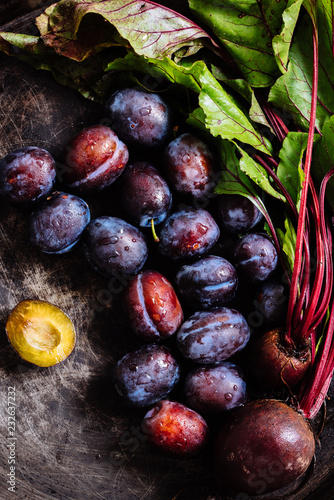 plum, beetroot, fresh, dripped, dark, vitamin, seasonal, nourishment, nature, natural, juicy, from above, freshness, agriculture, composition, waterdrop, vegetarian, vegetable, ripe, purple, pile, organic, many, lush, ingredient, healthy, fruit