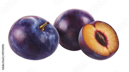 plum, fruit, purple, blue, yellow, red, ripe, fresh, juicy, sweet, delicious, healthy, food, nature, still, life, photo, studio, white, background, macro, close, up, organic, edible, vitamin, alimentary, snack, dessert, breakfast, smoothie, jam, pie, tart, culinary, gastronomy, agriculture, harvest, produce, garden, tree, seed, skin