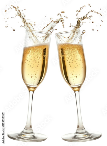 PNG 2 glasses of splash champagne toasting cheers drink wine.