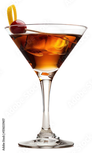alcoholic beverage, cocktail glass, presentation, photo, transparent, ice cube, manhattan, beverage, cocktail, isolated, alcohol, classic, elegant, garnish, martini, minimal, element, cherry, receipe, cube, drink, glasses, lemon, photo, twirling, ice, alcoholic