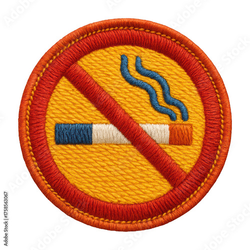 colours, background, texture, shadow, smoking, textile, shape, icon, transparent, thread, stitching, outlined, bold, rich, tone, detailing, embroidered, isolated, vibrant, patch, edge, soft, logotype, signs, badge, design, health, helmet, orange, symbol, yellow, apparel, hard hat, warning, circular, clothing, cigarette, prohibition, illustration