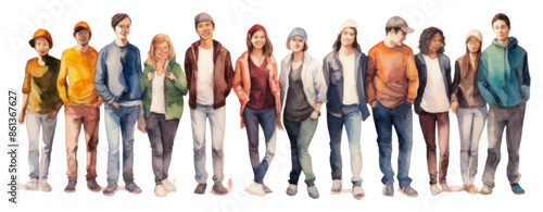adult, illustration, watercolor, cartoon, crowd, jean, man, woman, person, watercolor, clothing, footwear, paper, bag, man, shoe, downloadable, transparent, element, goggles, graphic, jewellery, textile, human, white, earth, face, head, hat, togetherness, accessory, friendship, character, isolated, necklace, creative, apparel, helmet, coat