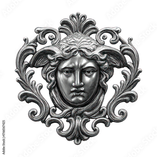 decoration, shadow, silver, art, background, design, emblem, medusa, person, mythology, texture, vintage, chrome, face, accessory, transparent, luxury, logotype, classical, furniture, lighting, baroque, elegant, element, figure, human, royals, head, highly, centered, detailed, composition, export, single, symbol, style, mythical, decorative, luxurious, embossed, isolated, suitable, honed, ornate