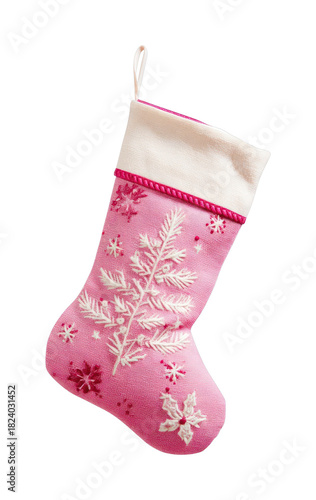 transparent, decoration, embroidery, christmas, clipping, isolated, ornament, stocking, festive, holiday, winter, front, photo, theme, path, pink, real, view