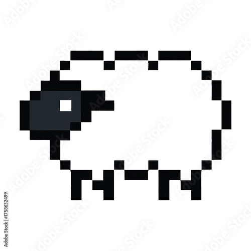 digital illustration, black-and-white, illustration, transparent, background, minimalist, isolated, digital, stencil, animal, arcade, design, shadow, simple, black, pixel, retro, sheep, style, white, cute, game, icon, art, pixelated