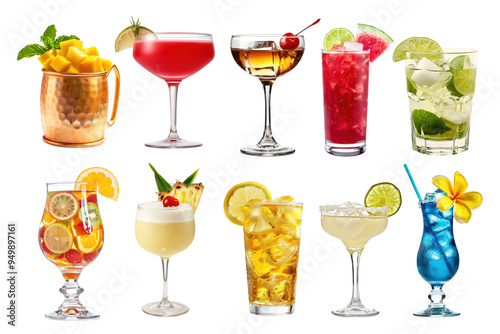 PNG tropical drink element set, transparent background