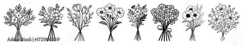 illustration, black-and-white, transparent, collection, hand-drawn, silhouette, botanical, isolated, bouquet, element, flower, vintage, design, floral, black, bunch, mixed, white, art, set