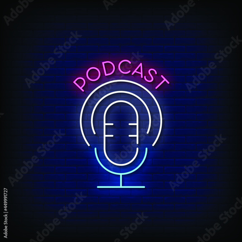 Podcast Neon Signs Style Text Vector