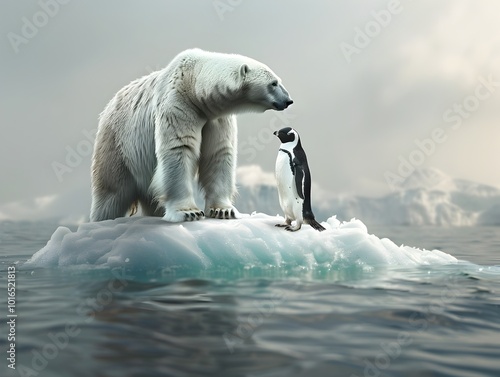 polar, bear, penguin, iceberg, melting, global, warming, climate, change, environment, wildlife, nature, arctic, antarctic, survival, ecosystem, habitat, endangered, species, conservation, temperature, rise, ice, water, sea, ocean, floating, drift, animal, interaction, hope, crisis, landscape, cold, freeze, icy, glacé, scenery, outdoors, wilderness, fragile, vulnerable, impact, challenge, threat, awareness, concern, protect, preserve