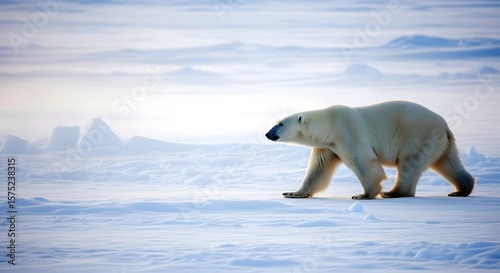 Polar Bear Walking Across Cold Arctic Ice Field Landscape