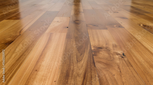 Polished Wooden Floor Wide-Angle, Low-Angle View of Parallel Wood Planks