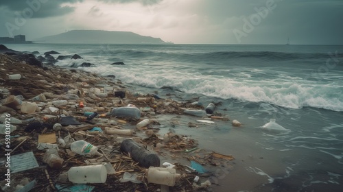 plastic, pollution, sea, beach, ocean, nature, seascape, coastline