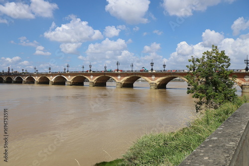 europa, france, aquitaine, gironde, bordeaux, city, townsfolk, city, city landscape, urban, construction, large building, architecture, ancient, historic, bridge, bridge, distinctive, tour tourism, travel, summer, stone bridge, garonne, river, river, water