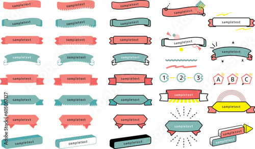 popな手書き風リボン素材セット・リボンフレーム・枠・あしらい・装飾・ナンバー