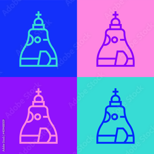 Pop art line The Tsar bell in Moscow monument icon isolated on color background. Vector.