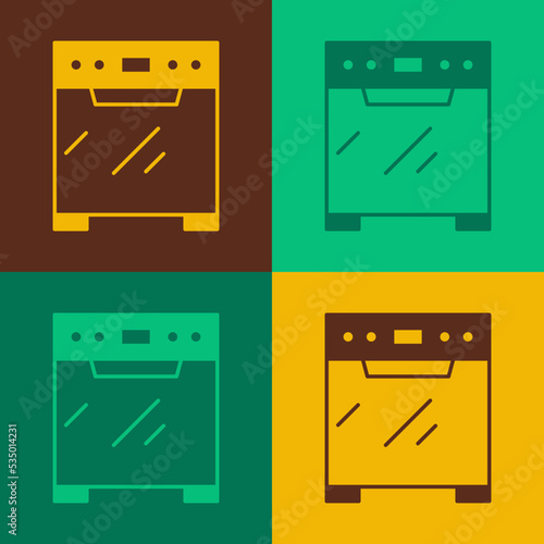 Pop art Oven icon isolated on color background. Stove gas oven sign. Vector