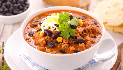 pork meat, black, bean, chili, spicey, hot, stew, soup, bowl, meal, lunch, dinner, healthy, alimentary, savoury, cooked, homemade, fresh, tasty, delicious, protein, cookery, prepared, food, plate, herb, seasoning, vegetable, tomatoes, onion, garlic, pepper, favor, hearty, rustic, classic, wholesome, culinary, dish, closeup, garnished, steaming, portion, plated, serving, aromatic, traditional, farm