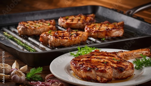 pork meat, plate, garlic, bone, roasted, background, food, table, cooking, meat, bar-b-q, steak, spice, bar-b-q, grill, dinner, board, meal, lunch, dish, wooden, pepper, grilled, fried, herb, roast, salt, fillet, knife, mustard, tenderloin, rosemary, slice, rustic, brown, chop, cooked, cut, cutting, delicious, eat, fresh, hot, juicy, pan, portion, tasty