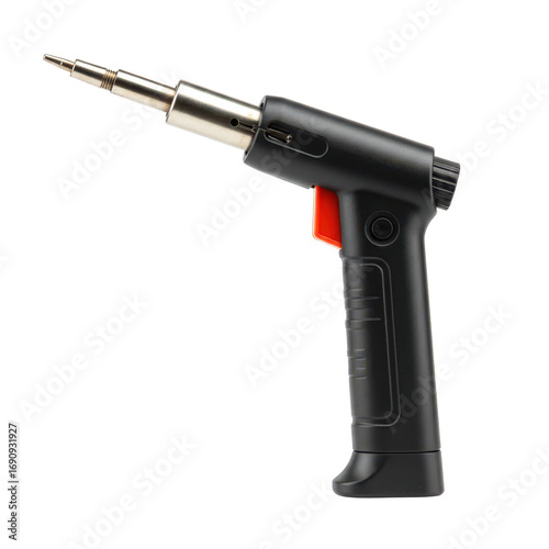 Portable butane-powered soldering iron tool with ergonomic handle and trigger, isolated on white background. Ideal for electronics and DIY.