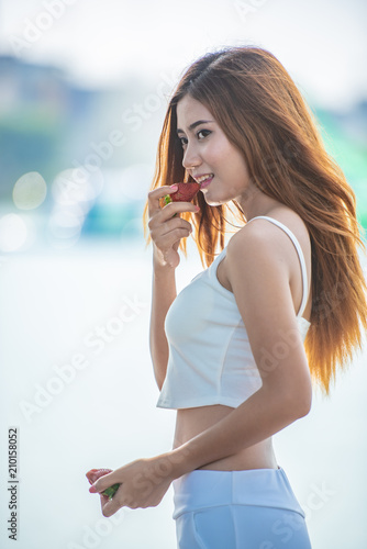 woman, young, beautiful, beauty, portrait, phone, people, happy, hair, person, model, smiling, summer, face, white, cute, smile, mobile, fashion, lady, blond, happiness, 1, nature, brunette, sexy, strawberry, eating, lip, red, desire, fruit, mouth, lipstick, girl, temptation, female, berry, erotic, food, fresh, sweet, cosmetic, manicure, sensual