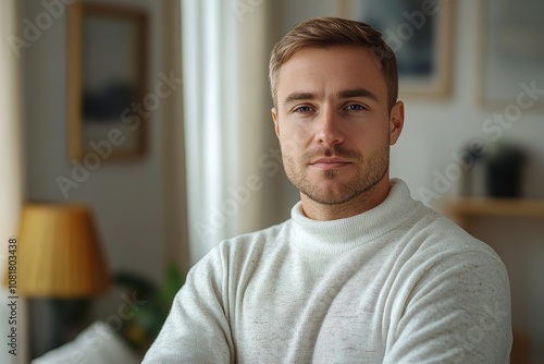 man, caucasian, scandinavian, 30s, portrait, copy space, smile, mature, male, blond, happy, face, person, adult, authentic, minimalistic, expression, attractive, lifestyle, photogenic, beard, looking, guy, casual attire, model, background, positive, isolated, studio, confidence, fashion, casual attire, emotion, happiness, middle-aged, friendly, natural, alone, 1, horizontal, real, indoor, modern, posing