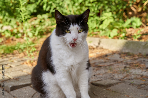 wounded, annoyed, angry, cat, cruelty, bullet, open mouth, wound, adorable, animal, attacked, background, beautiful, black, closeup, copy space, cute, dangerous, domestic, eye, face, felino, fluffy, forehead, frontal, fur, garden, head, hit, injured, look, male, mammal, nature, nose, pet, portrait, pretty, projectile, shot, tomcat, view, watch, white, yellow