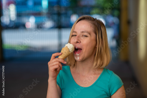 cream, eating, ice, woman, adult, attractive, caucasian, cone, cute, face, female, happiness, holding, girl, summer, vacation, city, holiday, relaxed, carefree, missy, street, colours, chocolate, alone, walk, pastime, sweet, ice cream, rest, emotion, pleasant, vanilla, taste, blond, youth, enjoying, snack, beauty, pretty, town, urban, waffle, break, built, dress, city landscape, joyful, sunny
