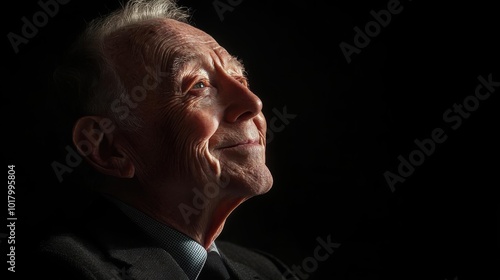 Portrait of a distinguished elderly man in a suit against a dark background. The image conveys wisdom, experience, and confidence.