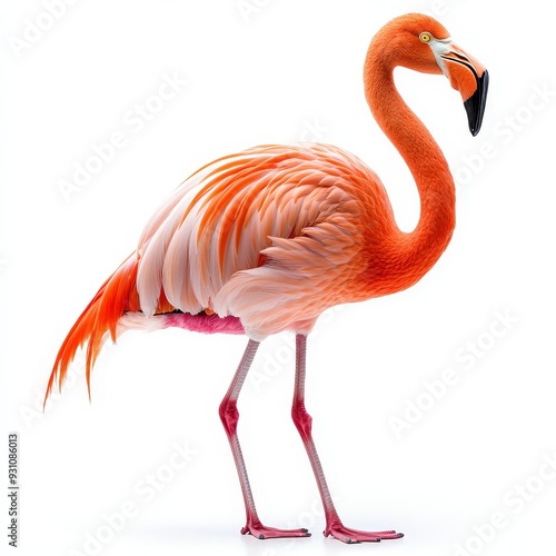 Portrait of a flamingo full body standing front vi 495 flamingo, bird, pink, animal, nature, water, zoo, beak, wildlife, red, neck, isolated, standing, feather, tropical, white, beauty, fauna, flamin