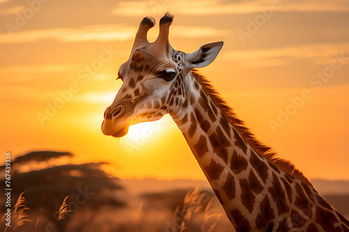 portrait of a giraffe in the African savanna in the sunlight. mammals and wildlife
