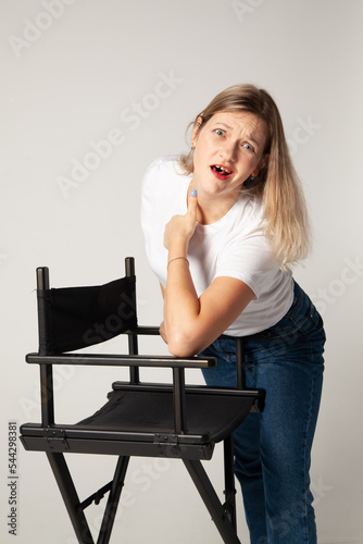 woman, chair, sitting, beauty, business, person, fashion, hair, model, leg, office, businesswoman, people, dress, smile, 1, studio, lady, skirt, face, smiling, phone, blond, body, posing