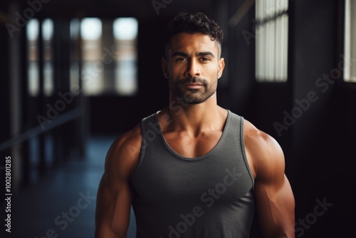 Portrait of a glad indian man in his 30s donning a trendy cropped top over empty modern loft background
