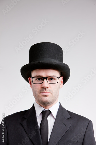 silk hat, lord, goggles, business, businessman, challenge, change, concentrated, concept, difference, doubt, leader, necktie, office, problem solving, serious, thinking