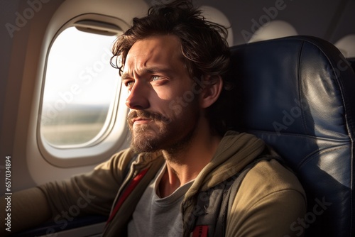 passenger, plane, man, guy, jet, relaxing, portrait, person, airliner, holiday, aerodrome, departure, boarding, arrival, arrive, rest, photogenic, indoor, vacation, flying, comfortable, safety, aviation, inside, voyage, seat, cabin, interior, airline, lifestyle, window, traveler, holiday maker, modern, caucasian, aircraft, tour tourism, adult, sitting, male, transportation, journey, trip, flight, transport, aeroplane, travel