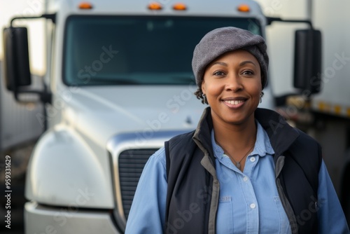 people, portrait, middle-aged, african american, female, truck, driver, transportation, professional, woman, occupation, work, vehicle, driving, logistic, freight, road, commercial, employment, industry, cargo, delivery, manpower, safety, journey, trucking, highway, travel, service, management, supply, chain, trip, long, haul, dependability, experienced, uniform, adult, men at work, route, transport, load, heavy, duty, technology, modern, 1, lifestyle