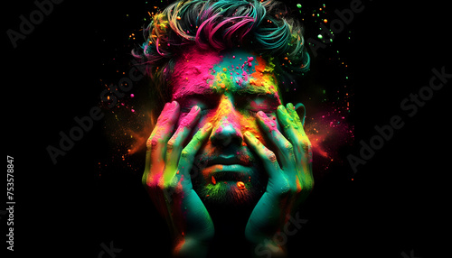 man, face, illustration, people, festival, holi, portrait, india, hinduism, woman