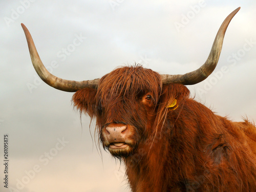 longhorn, highlander, portrait, rainy, cow, loll, tongue, bang, countryside, daytime, dutch, hairy, holland, horn, farm animal, long hair, looking, mammal, holland, pink nose, sky, sky background, standing, summer