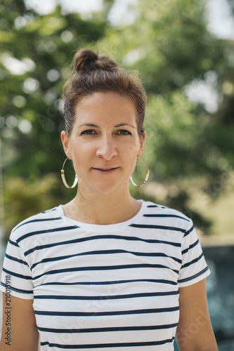 Portrait of a smiling brunette woman outdoors
