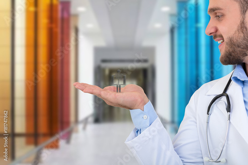 Portrait of a smiling male doctor holding xray symbol in hands.