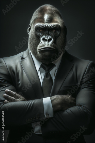 Portrait of a Successful Business Gorilla Businessman with Suit and Tie building Wealth Money Fortune