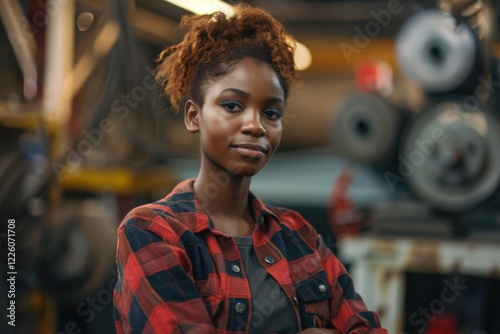 Portrait of a young African American female auto mechanic