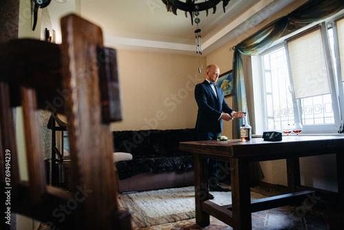 beard, blue, bow tie, day, fashion, groom, guy, inside, joy, man, 1, portrait, smile, standing, suit, summer, unshaved, wedding, white, outside, 2, father